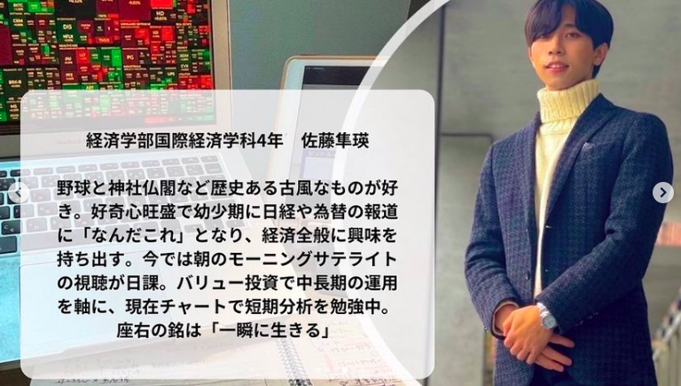 Member2021年6月18日、旧経済研究会(いつの間にか消滅)を再興し、経済学部生を中心に、経済や投資、金融リテラシーの向上など目的に活動するサークル「Seinan Investment」が設立されました。本投稿はその設立メンバーについてです。また、下記のリンクは学生投資連合(USIC)経由でSankeiBizさんに掲載された記事です。設立の動機やメンバーの投資に対する考え方など詳しく記載されています!どうぞよろしくお願いいたします!